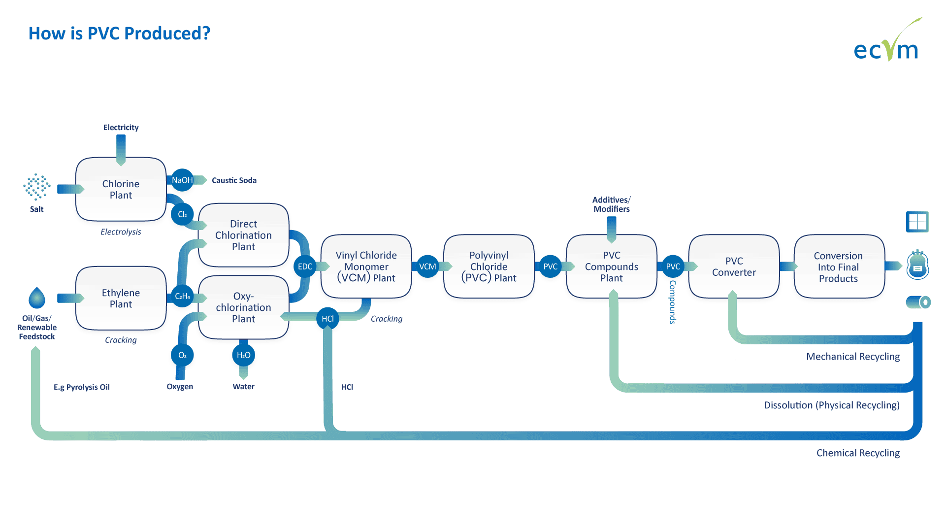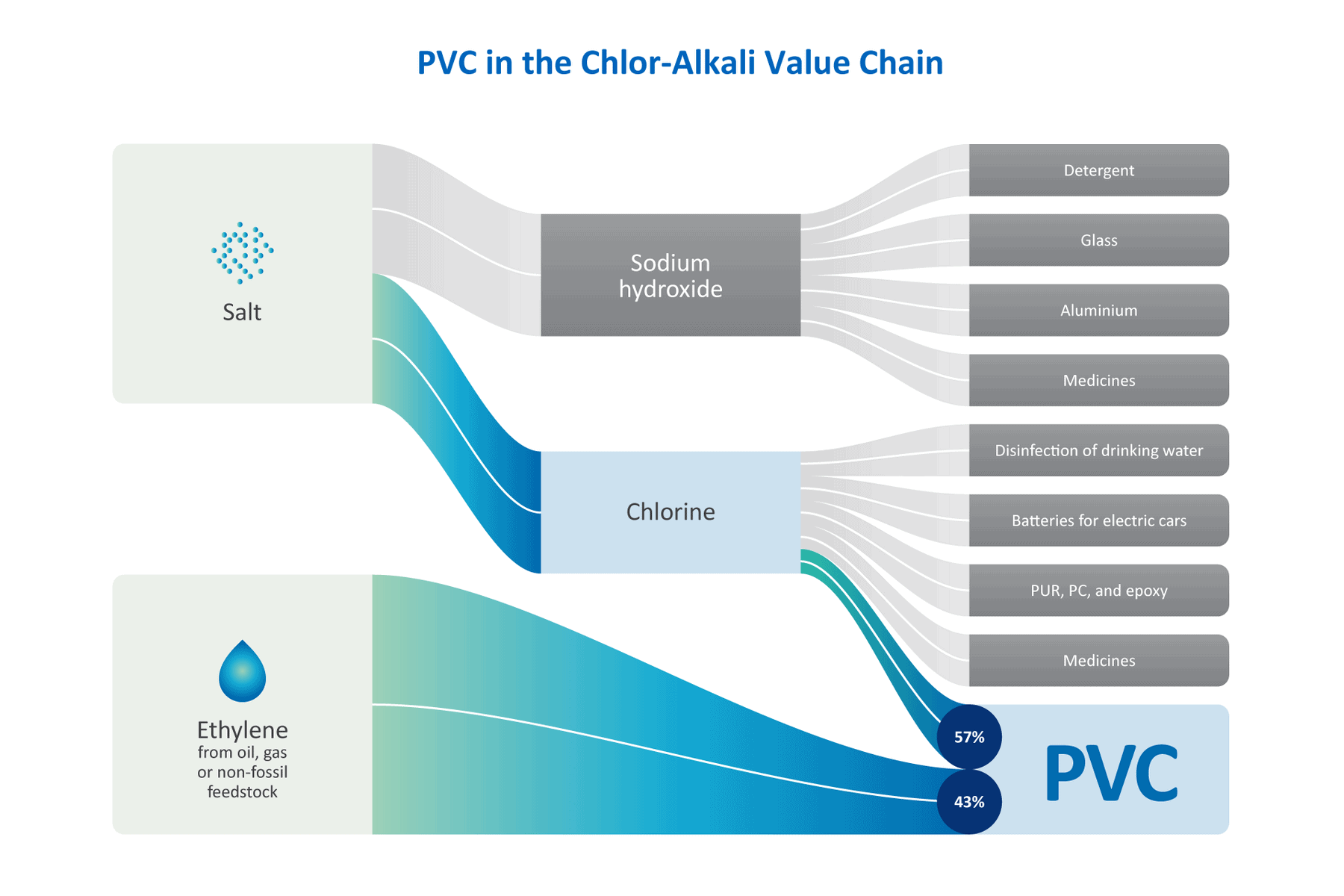 - PVC production therefore helps keep the entire chlor-alkali chain balanced and efficient, while supplying a durable, recyclable material for society.